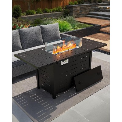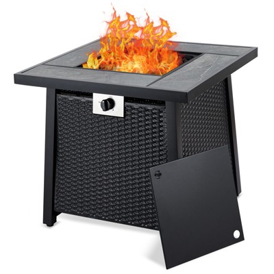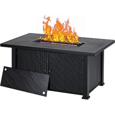 COZONY Propane Fire Pit Table with Rattan Panel and Glass Wind Guard