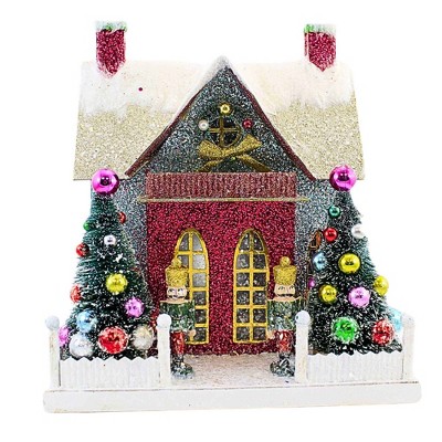 Bethany Lowe 13.0 Inch Pastel Forest Bottle Brush Tree Christmas Decorative Tree Set , Christmas Decor Gold Glittered (6PC)