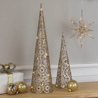 Northlight LED Lighted Sisal Mini Christmas Tree - 10" - Silver and Gold - Warm White