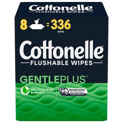 Cottonelle GentlePlus Flushable Wipes, Rigid Flip-Top, 336 Ct