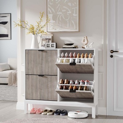 TackView Natural Rattan 4 Flip-Door Shoe Cabinet with Adjustable Shelves – Modern Freestanding Shoe Rack