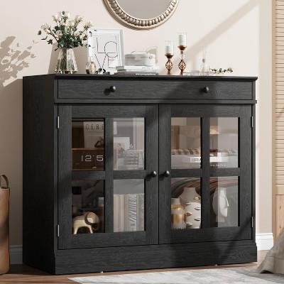 35.4" White Modern Sideboard - Glass Door Buffet Cabinet with Drawer Storage for Dining Room & Kitchen