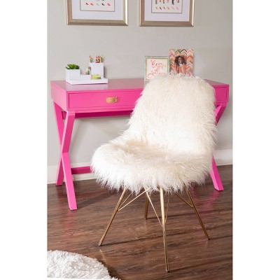 Remy Flokati Modern Faux Fur Accent and Office Chair Chair White - Linon