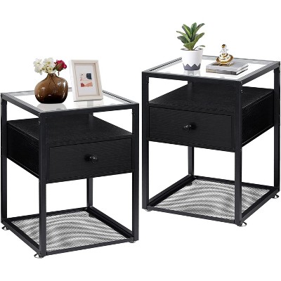Lantine Industrial 3-Tier C-Shaped Side End Table for Living Room