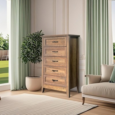 Wooden 5 Drawer Dresser with Metal Legs of Drawers for Bedroom, Living Room, Entryway