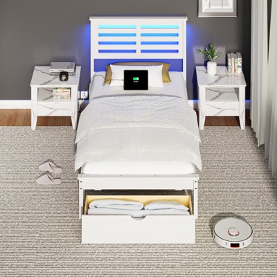 Bonnlo White Nightstand, Small Nightstand with Drawer & Shelf