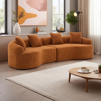 110" Chenille Compression Curved Sectional Sofa with 4 Pillows
