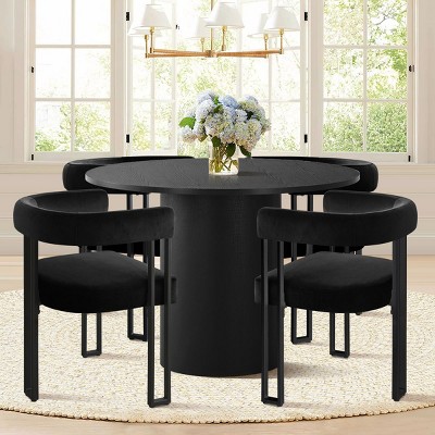 Fabric Upholstered Dining Chairs Set of 2, Modern Kitchen Side Chair with Black Metal Sled Base - Panipeachy