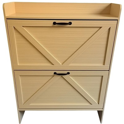 5-Tier Farmhouse Rattan Shoe Storage Cabinet, Waterproof Engineered Wood