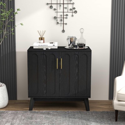 MAYEERTY Wood Frame Armchair, Sturdy Wood Legs, Living Room Bedroom, Black PU
