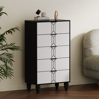 Modern Wooden 5 Drawer Dresser with Vintage Pattern Design, Tall Dresser for Closet