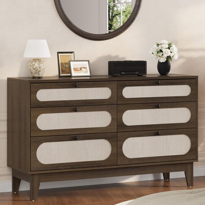 Rattan Dresser, 6 Drawers Dresser for Closet, Chests of Drawers