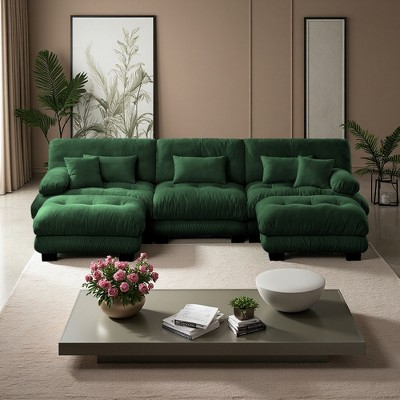 110" Chenille Modular U-Shaped Sectional Sofa with 2 Ottomans