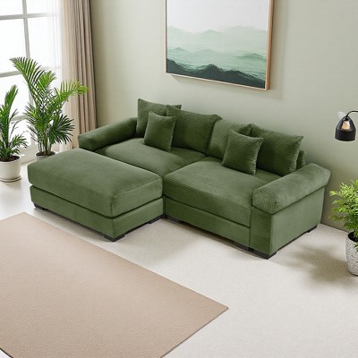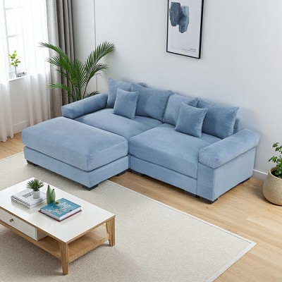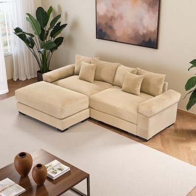 133.4" Corduroy L-Shaped Modular Sectional Sofa with Console & USB