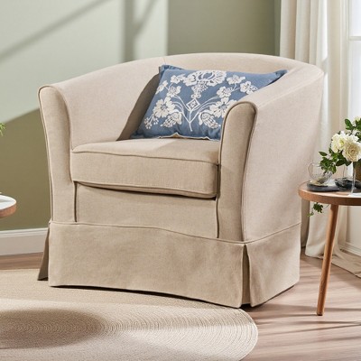 Swivel Barrel Accent Chair with Houndstooth Pattern and Solid Wood Frame
