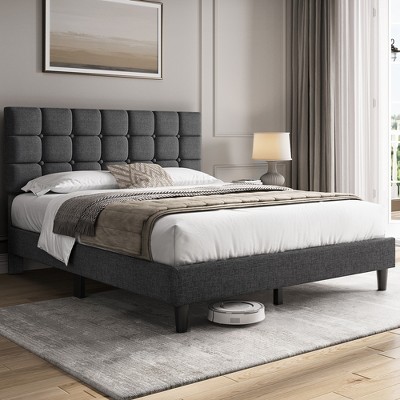 Yaheetech Upholstered Platform Bed Frame with Square Tufted Headboard