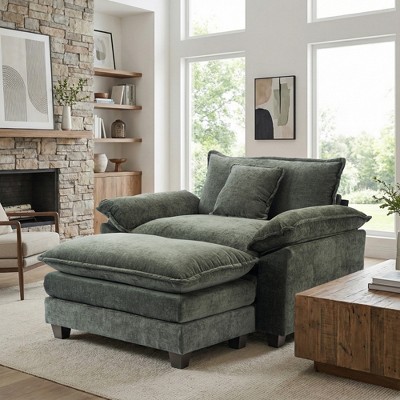 EHMKNP Oversized Chenille Accent Chair with Ottoman
