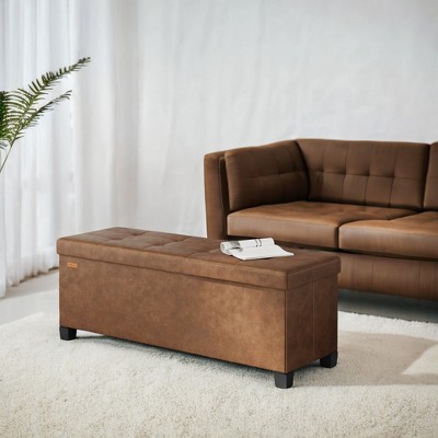 SONGMICS Storage Ottoman Bench Leather Ottoman with Storage