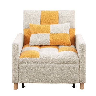 90" Lamb's Wool 2-Seater Cushion Sofa with 2 Cushions & 2 Ball Pillows
