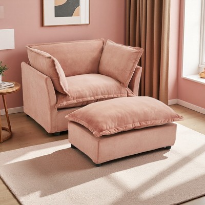 87" Modular Sectional Sofa with Cloud Corduroy, Convertible Bed & Footrests