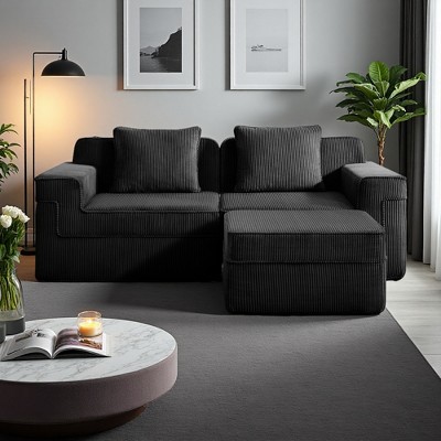 75" Corduroy Cloud Modular L-Shaped Sectional Sofa with Ottoman