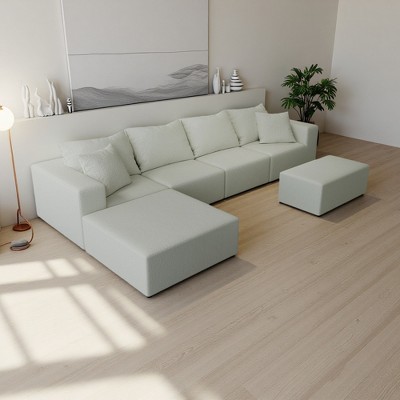 118.2" Oversized Corduroy L-Shaped Sectional Sofa, 6 Pillows, Modular