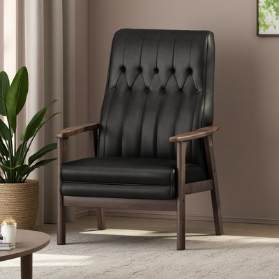25.75" Matte Faux Leather Mid-Century Modern Accent Chair with Tufted Stitching