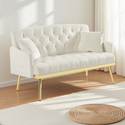 2-Seater Velvet Sofa with Tufted Back & Metal Legs