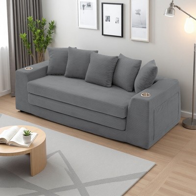 78.5" Corduroy Folding Convertible Sofa Bed with 2 Pillows, No Assembly