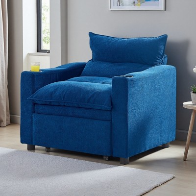 Velvet 3-in-1 Sleeper Sofa Chair with Pullout Bed & Cup Holder
