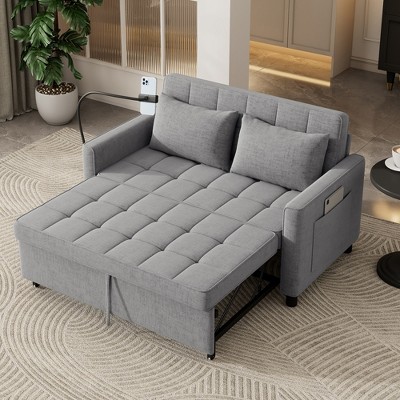 Merax Comfortable Chenille Loveseat Sofa with Pull-Out Sofa Bed
