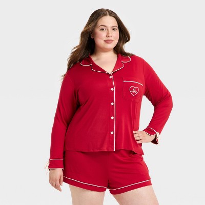 Women's Jersey Long Sleeve Notch Collar Shirt and Shorts Pajama Set - Auden™