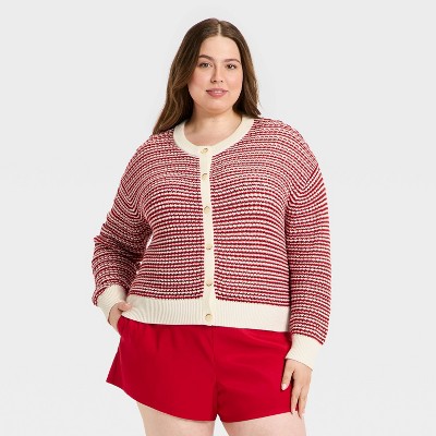 Women's Valentine's Day Cardigan Sweater - Universal Thread™ Red Striped
