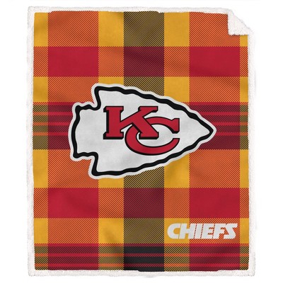 NFL Kansas City Chiefs Plaid Steel Royal Plush Faux Shearling Blanket