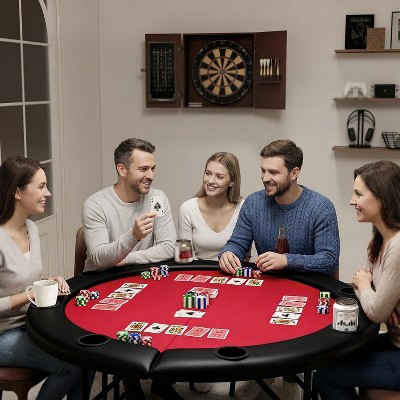 CuisinSmart Collapsible Round Poker Table, Poker Table Foldable with Cup Holder, 8-Player Game Table for Texas Holdem & Blackjack Club Family Game