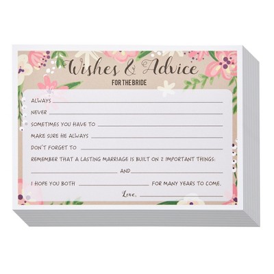 Best Paper Greetings 50 Pack Wedding Advice Cards for Bride, Bridal Shower Games, 5x7 in