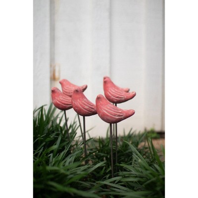 Set of 6 Clay Red Bird Plant Stakes 45" Tall Garden Decor by Kalalou