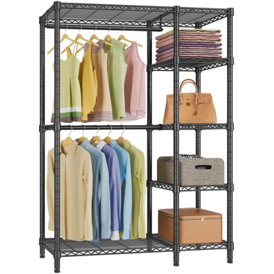A clothing rack or a garment rack is a great way to store and display your favorite outfits, shoes, and more. They are often compact, portable, and inexpensive. Many clothes racks are made of durable materials like steel that makes storing multiple items and heavy items easy. A clothing rack in a store or a walk-in closet adds to the aesthetic of the space. Target offers a wide range of garment racks or clothing bars in a variety of designs, styles, and materials. Browse through clothes racks make of metal, wood, or wicker. Pick from clothing racks with zippered covers for dust-free storage. Find garment racks in single rod and double rod options to suit your storage needs. Look through clothes racks with versatile uses like a built-in coat rack or a hat rack. You can also find garment racks that are foldable, extendable, wall-mounted, and free-standing. Browse through space-saving options like an over the door rack for clothes and accessories. Pick from garment racks for different areas of your home like the entryway, closet, laundry room, or foyer. You can find a clothes rack that goes perfectly with your home decor be it modern, rustic, or bohemian. A clothes rack or garment rack is an excellent piece of homeware that is both practical and functional. Find the right one for your home at Target.