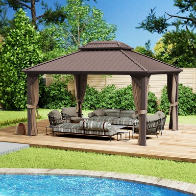 EAGLE PEAK Aluminum Frame with Steel Double Roof Hardtop Gazebo, Brown