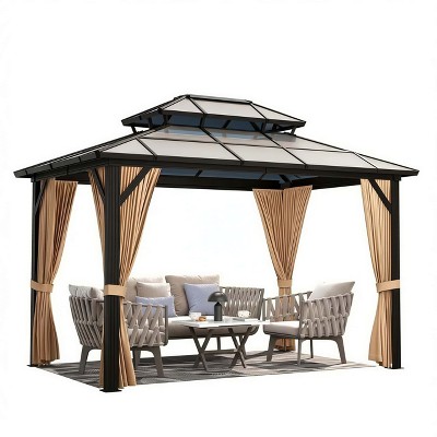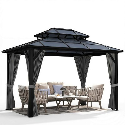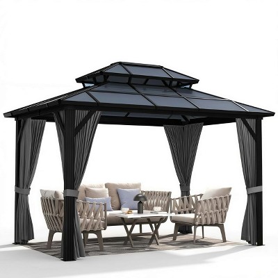 GustoWave 12'x12' Outdoor Double Hardtop Patio Gazebo for Deck, Backyard, Lawn, Garden