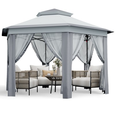 Add some style and flair to your backyard by bringing home a lovely gazebo. At Target, find a wide range of gazebos & pergolas to choose from. Look through a collection of large gazebos & pergolas that offers plenty of room to comfortably set-up a full dining table or seating underneath, giving you great flexibility. These gazebos & pergolas are made of sturdy material for long-lasting use. They also come with slotted design slides that let you fully customize the shade level throughout the day. You can entertain your friends and family members when you throw parties or just relax and enjoy the conversation. Explore a range of arched pergolas with retractable canopy that provide plenty of space for patio furniture and makes a great shelter for outdoor gatherings like picnics, barbecues, and parties. The stylish modern designs that will complement any outdoor space. Browse through a large collection of gazebos & pergolas and find the perfect one for your garden.