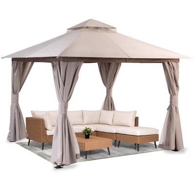 Add some style and flair to your backyard by bringing home a lovely gazebo. At Target, find a wide range of gazebos & pergolas to choose from. Look through a collection of large gazebos & pergolas that offers plenty of room to comfortably set-up a full dining table or seating underneath, giving you great flexibility. These gazebos & pergolas are made of sturdy material for long-lasting use. They also come with slotted design slides that let you fully customize the shade level throughout the day. You can entertain your friends and family members when you throw parties or just relax and enjoy the conversation. Explore a range of arched pergolas with retractable canopy that provide plenty of space for patio furniture and makes a great shelter for outdoor gatherings like picnics, barbecues, and parties. The stylish modern designs that will complement any outdoor space. Browse through a large collection of gazebos & pergolas and find the perfect one for your garden.