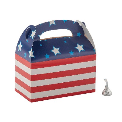 Fun Express 6 1/4" x 5 1/4" Patriotic Stars & Stripes Cardstock Favor Boxes – 12 Pc.