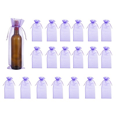 Unique Bargains Organza Drawstring Wine Bottle Wrapping Gift Bags 14.5" x 5.5" 20 Pcs