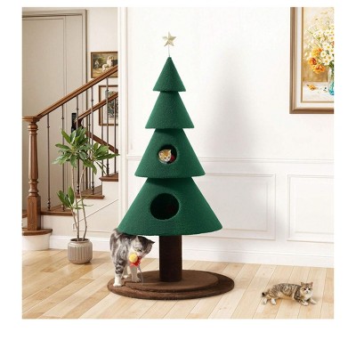 Solid Wood Cat Tree /  Cat Condo Warm Cat Climbing Shelf-Green + Red