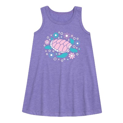 Girls' - Instant Message - Turtle And Flowers Graphic Sleeveless Aline Dress