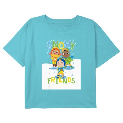 Girl's Cocomelon Snowy Friends Graphic Graphic Cropped T-Shirt