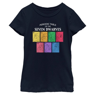 Girls Snow White and the Seven Dwarfs Periodic Table Multicolor T Shirt
