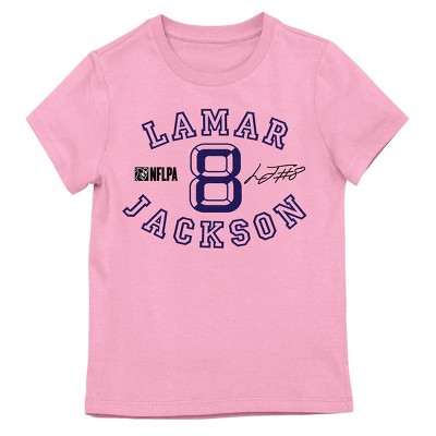 NFLPA Lamar Jackson 8 Signature Girl’s Pink Crew Neck Short Sleeve T-shirt