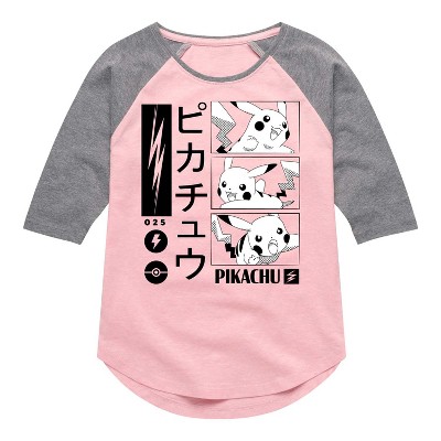 Girls' - Pokémon - Pikachu Manga Lightning Shirt Tail Raglan Graphic T-shirt
